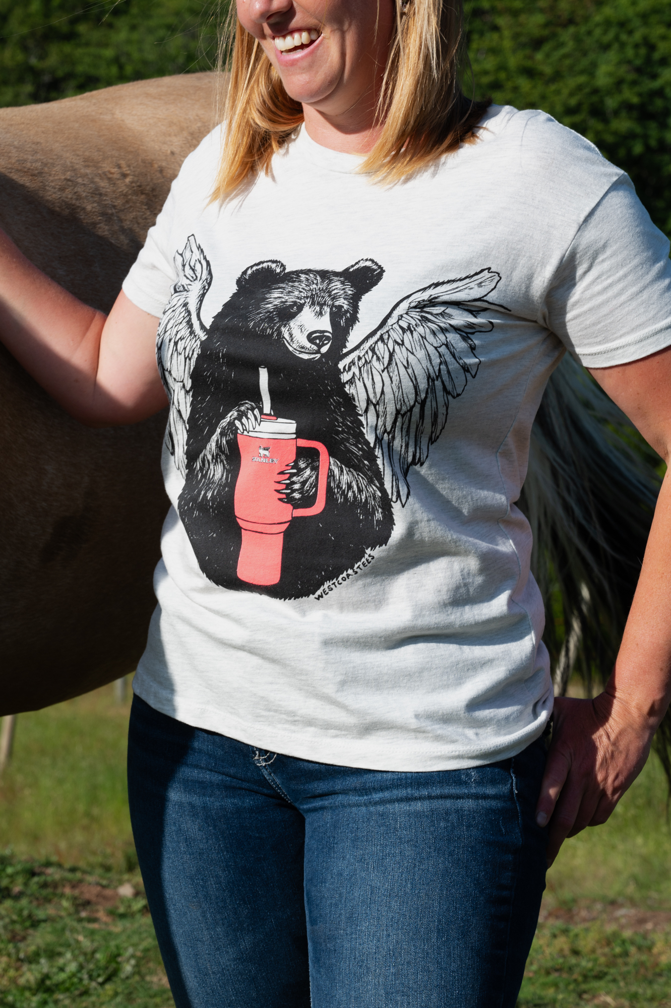 It's so good it will give you wings! Stanley Bear is printed on a Poly-Cotton (50% Polyester / 50% Combed-Cotton) T-shirt.